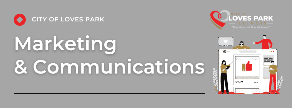 The mission of the City of Loves Park’s Marketing & Communications Department is to inform and engage citizens, strengthen and expand the City’s reputation and foster community relationships. Marketing & Communications is the public relations arm of the City and this team is the primary unit responsible for supporting, guiding and managing communications.